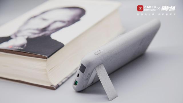 接口下方是一個折疊支架,可以把移動電源按一定角度起來。這樣還能把手機也撐住,一邊充電一邊追劇就非常的方便了。