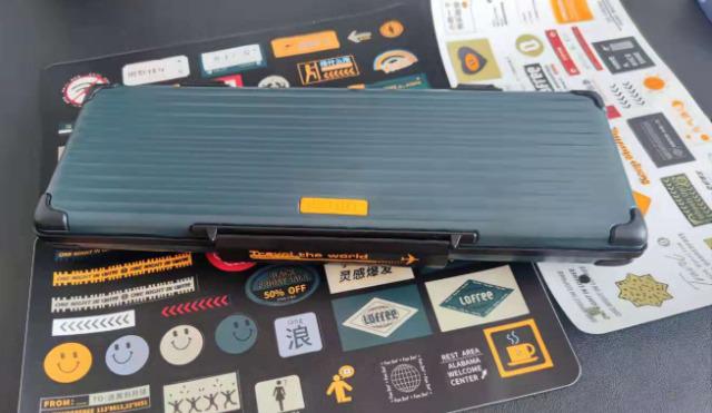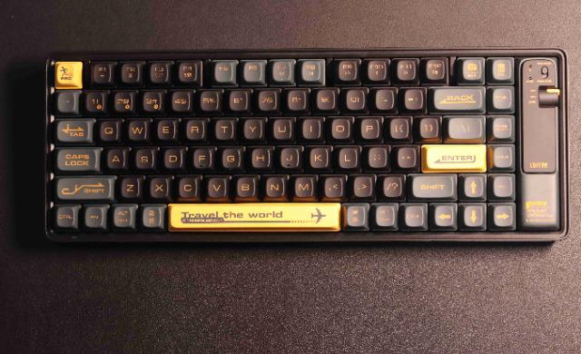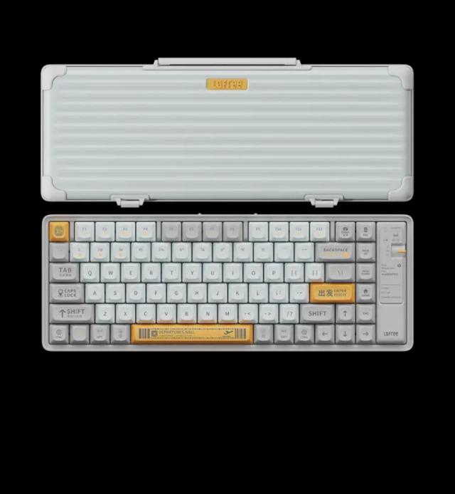 筆者拿到的是軍綠色的版本,另外這款鍵盤還有一個灰白色的版本重新設計了ESC enter空格等按鍵的噴涂,但也都是貼合旅行的元素。 鍵盤整體采用的是84鍵位緊湊布局,機身尺寸僅為342.5x138.5x33.7(單位mm),但從鍵位的設置來看更偏向于Mac端一些。機身重量為953克,分量感十足,這么小巧的機身這么大的重量的原因是其搭載了一塊4000mah電池,5小時即可充滿,按每天工作使用8小時計算大約可以使用4-5周時間,如果再摸魚幾個小時使用時間會更長,更大的電池更長的續航免去了頻繁充電的煩惱。