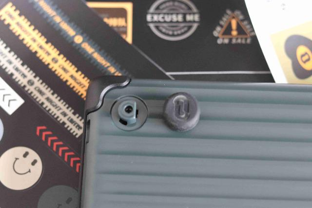 鍵盤本體以旅行箱為設計靈感,通過磁吸設計使防塵蓋與鍵盤吸附在一起,并且吸力很大,緊靠吸力可以直接將鍵盤吸起來。