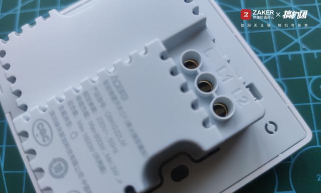 開關為白色,背面有3個接線孔,分別為L、L1、L2。 L孔接火線,L1、L2分別接2路燈具負載線;其中L1對應開關面板的右鍵,L2對應開關面板的左鍵。