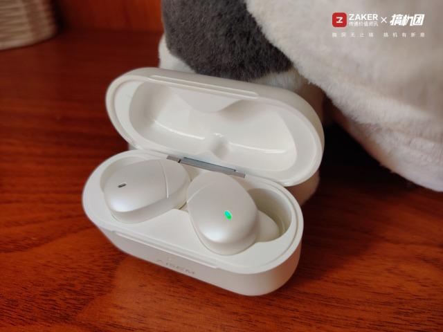 耳機采用比較常見的入耳式設計,重量很輕,整體做工還是比較令人滿意,沒有惱人的合模線,材質和耳機倉相同,顏色都是珠光白,非常漂亮。在耳機上分別標注了LR,可以很好的區分左右耳。耳機的觸目區域有一個狀態指示燈,可以用來連接或者查看電量。