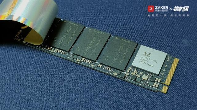 通過撕開J-20固態(tài)硬盤表層的貼紙,可以看到其采用的是沛睿旗艦級的RTS5772DL的主控芯片,采用13x13mm BGA封裝,支持NVMe 1.4 規(guī)范,內(nèi)置第三代 LDPC糾錯算法,支持AES256 / TCG OPAL 2.0/Pyrite 2.0等安全算法機制,省電模式功耗 1.5mW。NVMe Gen4*4容量1TB無緩存,TLC顆粒支持五年或300TBW質(zhì)保;官方標稱數(shù)據(jù),順序讀取:4700MB/s、順序?qū)懭耄?800MB/s。