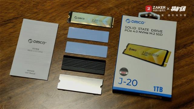 奧睿科J-20固態(tài)硬盤單配配件包含了M.2固態(tài)1T硬盤、機裝散熱馬甲、鋁合金底座、兩片導熱硅膠片、硬盤固定螺絲、以及說明書。除了我入手的這款1TB版本之外,還分別有單獨的512G版本和2TB版本。