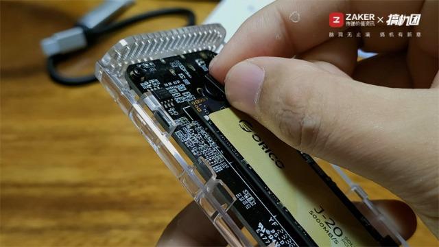 為了能夠發(fā)揮出J-20固態(tài)的全部實力,搭配的ORICO TCM2-U4固態(tài)硬盤盒,單機配件包括:透明硬盤盒、A+C to C的2合1全功能數(shù)據(jù)線、免工具塑膠卡扣*2、一片導熱硅膠片。