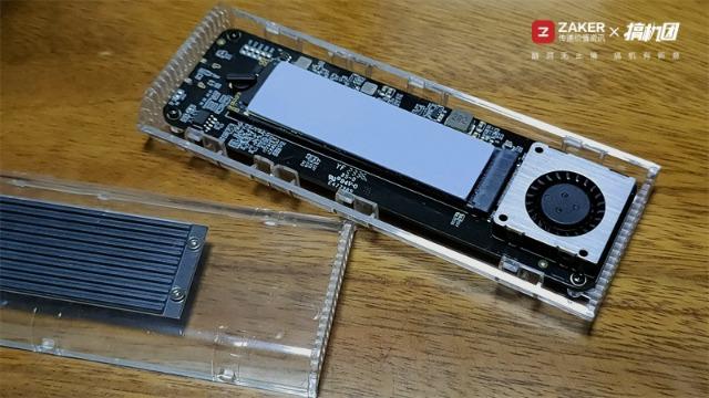 最后盒蓋之前還別忘記將隨機的導熱硅膠貼片撕去兩側(cè)保護塑料薄膜后貼在固態(tài)硬盤上,合蓋之后經(jīng)由導熱片將硬盤工作產(chǎn)生的熱量快速導出到外殼上的散熱片上,避免高溫對存儲顆粒壽命的損害。