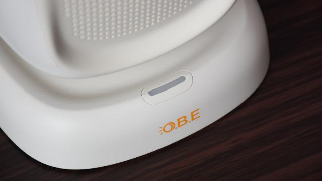 機身正面上方是一顆圓形的鏡頭;中間鏤空的格柵和背部格柵形成前后貫穿的風道,用于散熱;靠下方的黑色小圓點是紅外接收器。電源鍵位于底座前方,實體按鍵方便操作,還鑲嵌有指示燈。